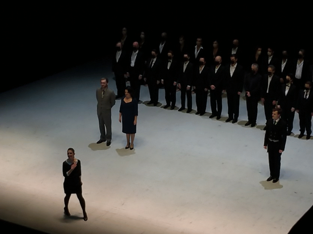 Thomas Hengelbrock dirige son Balthasar Neumann Ensemble. Un peu impersonnel au début, voire timide sur l’irrésistible Tornami a vagheggiar, avec un violon solo pas toujours juste sur Alma sospira mais un sublime violoncelle aux accents de viole de gambe sur Credete al mio dolore, les couleurs s’affirment progressivement, assumant même crânement les cors débridés de Sta nell’Ircana. Notons que l’intégralité du ballet n’a une fois de plus intéressé personne.