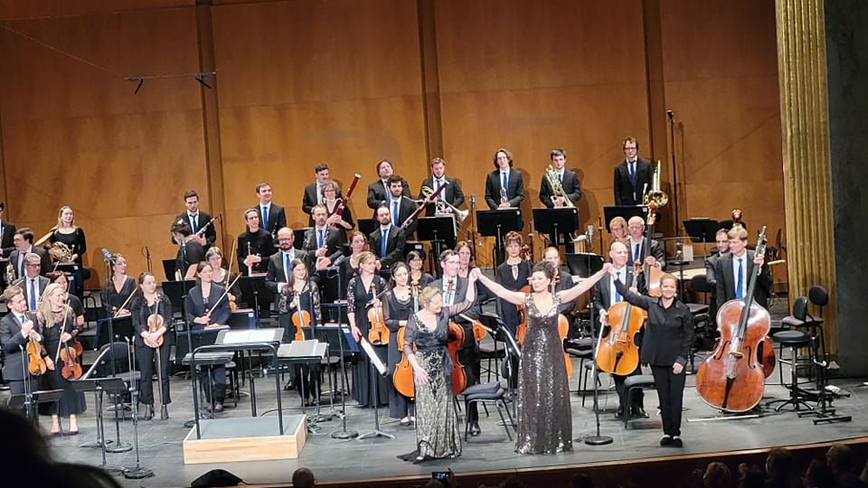 Il faut aussi mentionner la part non négligeable que joue Speranza Scappucci dans la réussite de la soirée. Pour une fois, l’orchestre n’est pas le parent pauvre du récital. L’ouverture de Semiramide, maîtrisée dans ses moindres contours, enflée comme l’exige le crescendo rossinien, reçoit une large ovation quand, d’ordinaire, les pages instrumentales prennent la forme d’un passage obligé que l’on applaudit brièvement pour vite passer à la suite. Tout en conduisant d’une main assurée un Orchestre de chambre de Paris enamouré, la cheffe respire de concert avec ses deux interprètes, condition encore plus indispensable dans un répertoire qui impose de varier les reprises – ce dont les deux chanteuses ne se privent pas, jusque dans le duo de Norma.