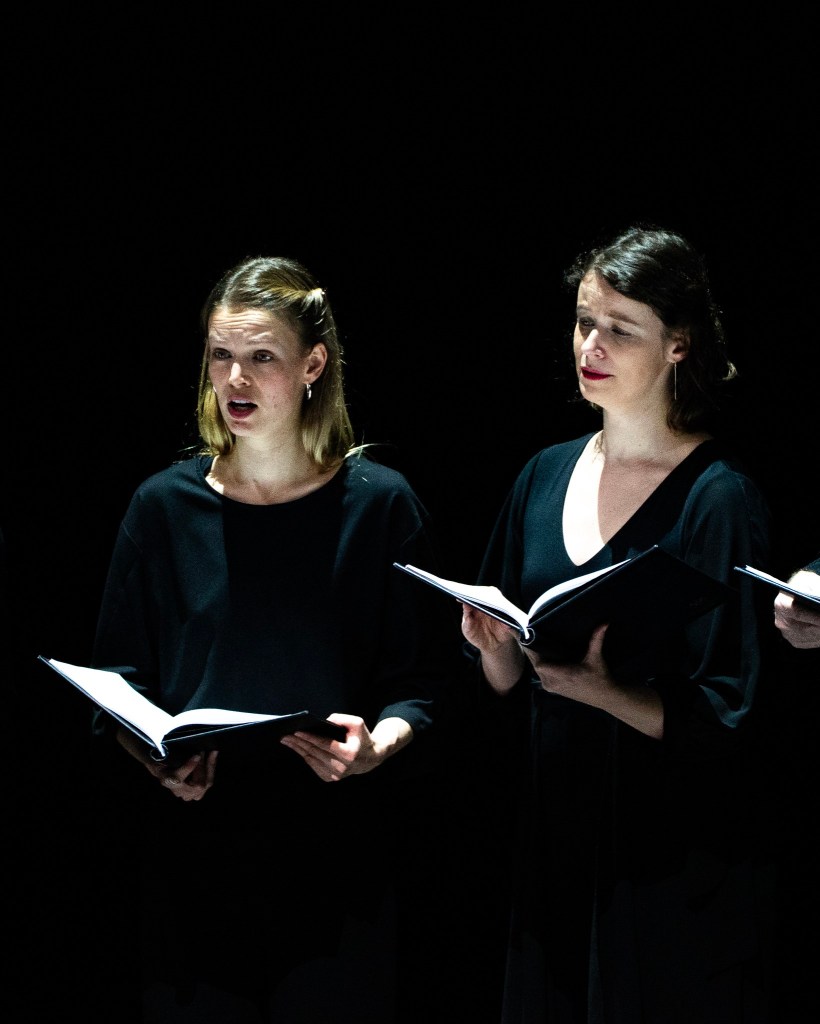 La salle Salle Henry Le Bœuf de BOZAR allie la chorégraphie de Saburo Teshigawara en réponse aux incantations religieuses de l’ensemble Vox Luminis, dirigé par Lionel Meunier et ici réuni en version XL.