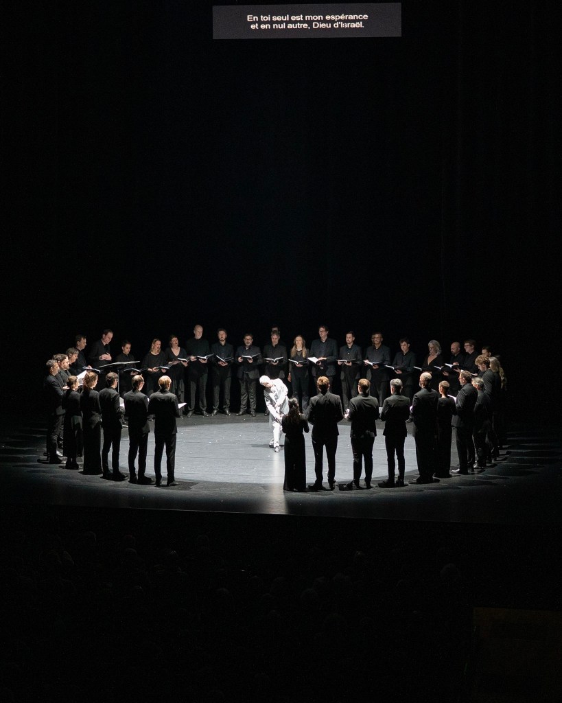 Le choix du mouvement, dans ce projet, ne procède ni d’une illustration musicale ni d’une traduction narrative du texte sacré. La chorégraphie de Saburo Teshigawara ne cherche pas à rendre visible une structure musicale déjà saturée de sens religieux, mais à en éprouver les tensions internes du corps, pour une étude d’un grand mystère de la musique.